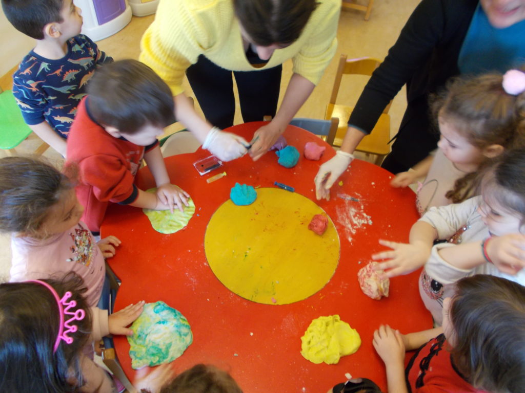 Φτιάχνοντας σπιτική πλαστελίνη με τους μαθητές των Προνηπίων.